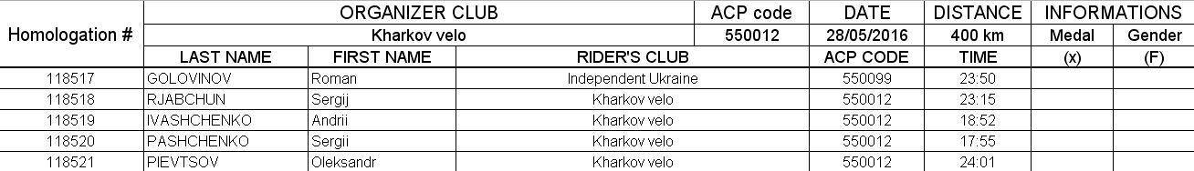 Заголовок сообщения: Re: Харьков, 28.05.2016, бревет 400 км