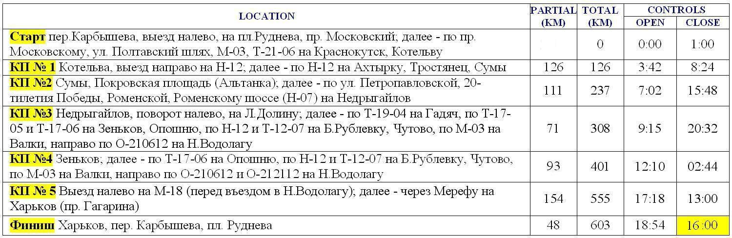 ГРАФИК ПРОХОЖДЕНИЯ BRM 600 km