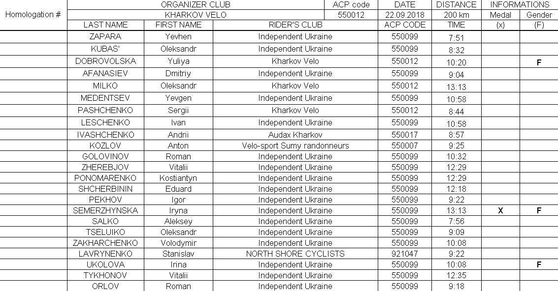 Клуб «Kharkov vélo» в соответствии с Международным Календарем RANDONNEURS MONDIAUX проводит традиционный бревет BRM 200 km: