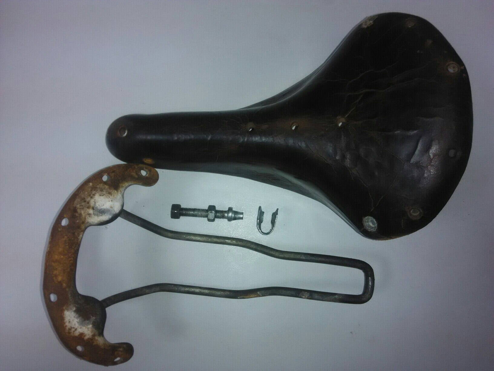 Снял половую краску с седла, кожу пока пропитал слегка пруфидом. Скоба с рамки самопальная и жиденькая, буду менять на родную.