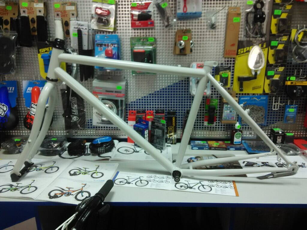 Я решил сдать раму на порошок. А посему удалось дозачистить следы от сварки пивотов, и взвесить раму без ничего. Рамця 16"