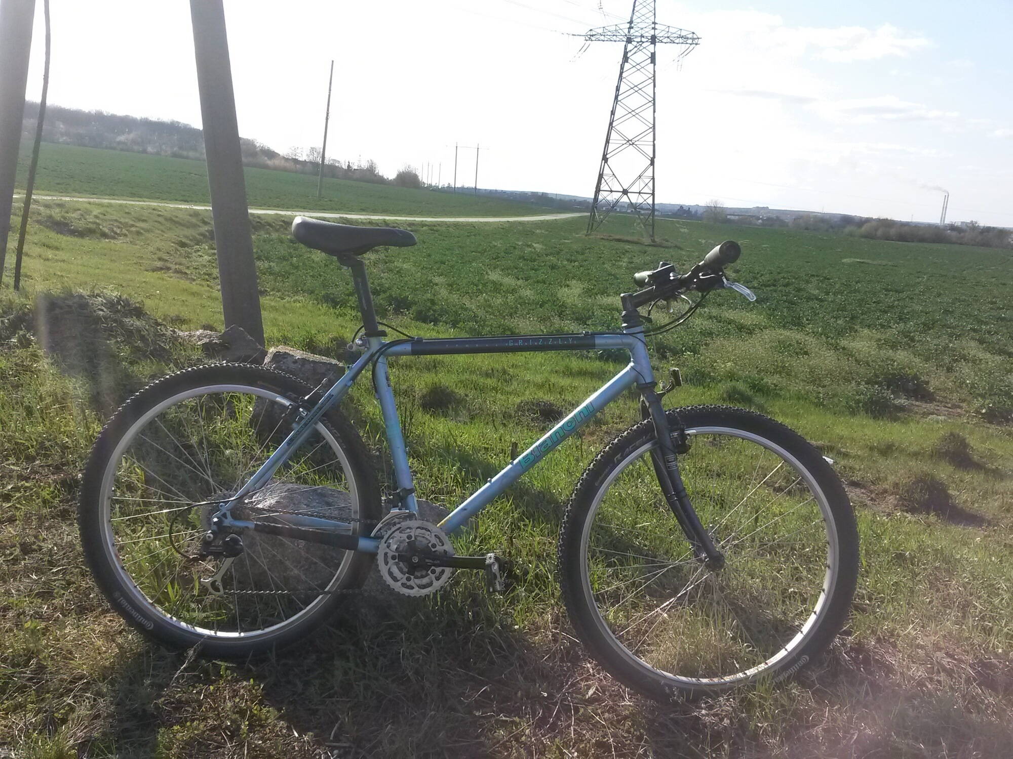 Велосипед купувався задля компенсації попередніх витрат. Зроблений якісно, порівняно легкий, не знищений, але фарба піднялася у місці кріплення переднього перемикача; рама з нормальними зазорами+гнутий місток (на мтб вперше зустрічаю); велосипед чудово їде, хоча тракторні maxxis 26×2.1 стоять...Шкода мені його стало, але ж не солити їх.
