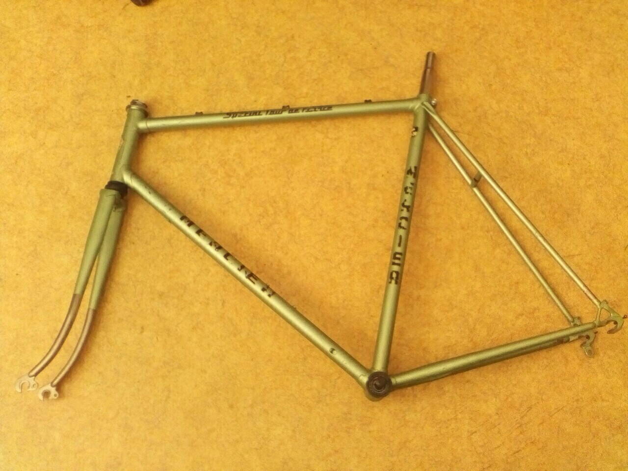 Собственно фрейм Mercier M28-26. Год определить не могу. По отверстиям для богажника&крыльев делаю заключение, что фрейм не шоссейный. Это к лучшему. Зазоры больше. Ведь я хочу собрать кроссовый вел.
