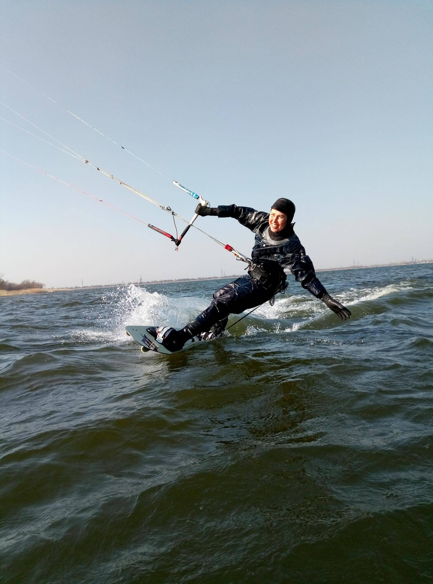 Супруга каталась в сухаре, а я уже пробовал мокрый костюм.