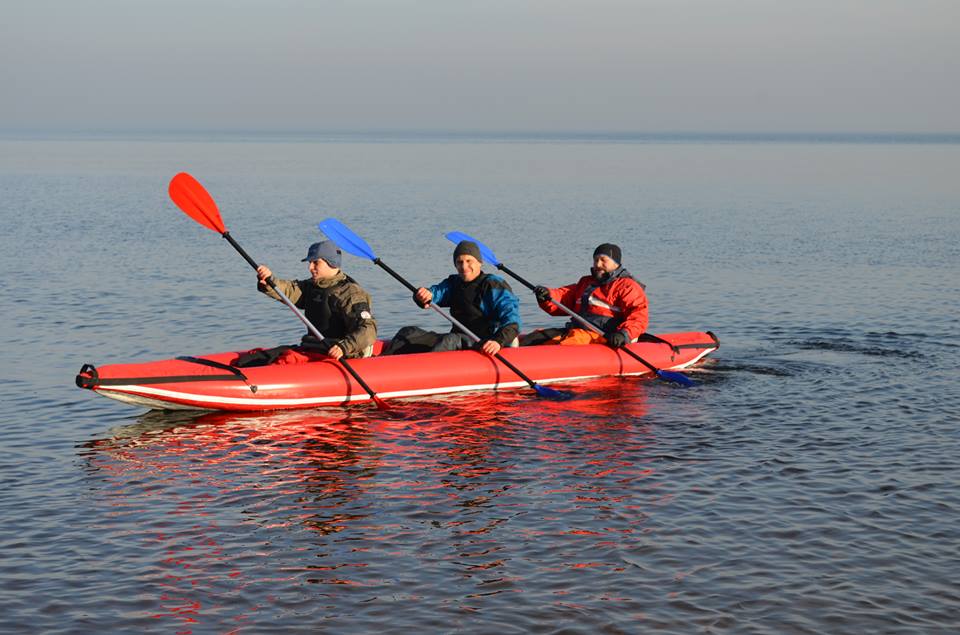 є такий нюанс - вона без системи самозливу. Звичайно, можна користуватися фартуком, але у випадку перегортання буде незручно залазити назад на воді. Тому наші надувні байдарки ми позиціонуємо як лодки для спокійної води. Восени візьмемось за розробку системи самозливу на над. байдарках. Поки що є один нюанс у тих лодок, які ми бачили такого типу - борти та дніще не мають жорсткого скріплення, через це на бурній воді вони виглядають досить хліпко. Ми збираємось використовувати матеріал airdeck для того, щоб зробити конструкцію жорсткою.
