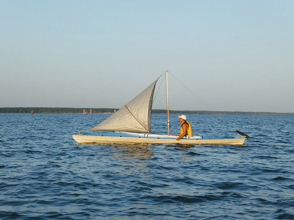 Цим літом при попутному вітрі постійно замість весел ставив просте допоміжне вітрило площею 4 кв.м(фото не завантажуються)