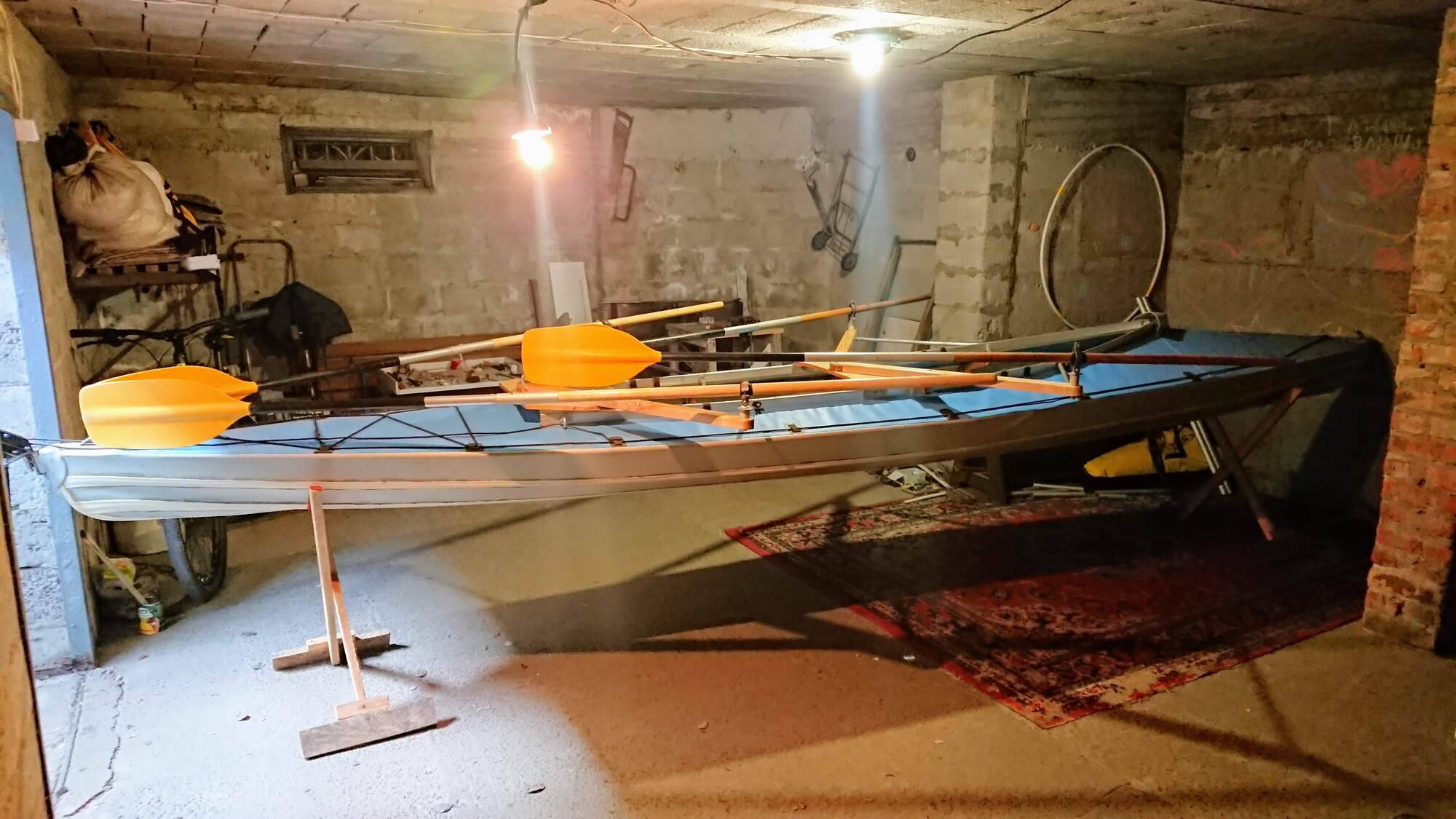 Все інше було зроблено із доступних матеріалів, збільшив довжину весел і поставив стерно ("руль"), який міг фіксуватись і бути як стабілізатор курсу.