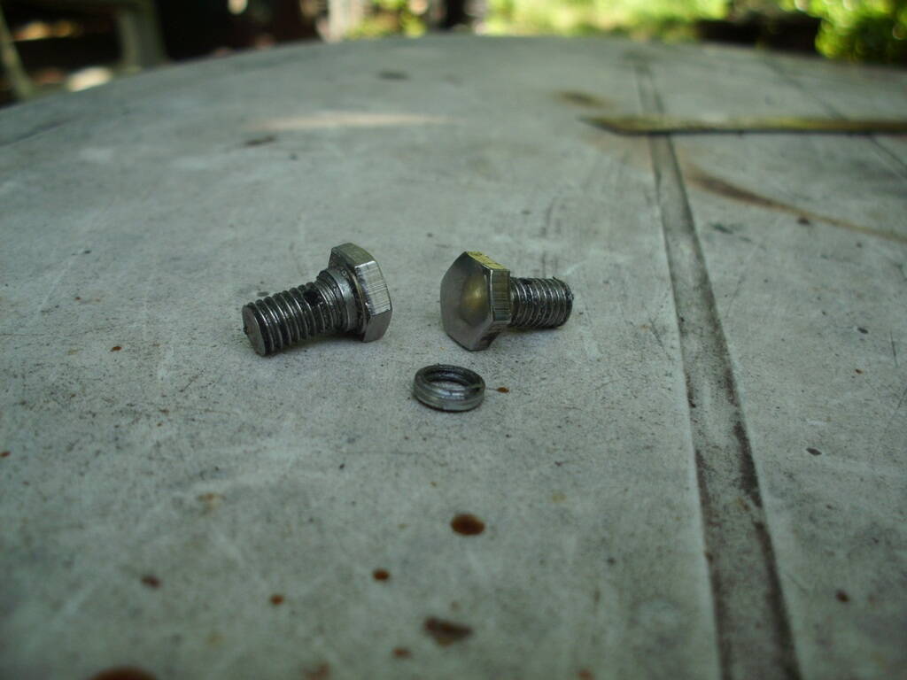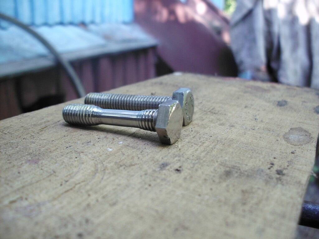 viewtopic.php?f=31&t=160854&p=1379087#p1379025Оригинальный болт имеет утолщение под головкой. Я не придумал ничего лучшего, как взять пруток 8 мм, просверлить на токарном станке и нарезать внутри резьбу М6. Нарезать на колечки и накрутить на болт – благо резьба на болтах оказалась под самую шляпку.