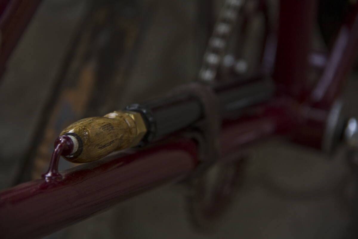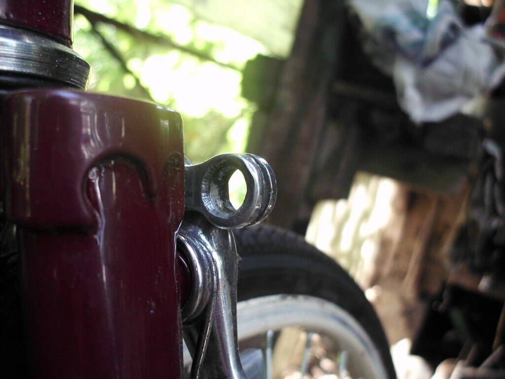 Посмотрим фотки велосипеда выше. С левой стороны в рычаге фигурный пропил, туда заводится красивая фасонная бонка с дыркой, в дырке трос, упирающийся в бонку напайкой. Это стильно выглядит и украсило велосипед, но по большому счёту, лишнее. Привычная конфигурация этого места, где тросик напайкой заведен в фигурную щель на рычаге, рулит.