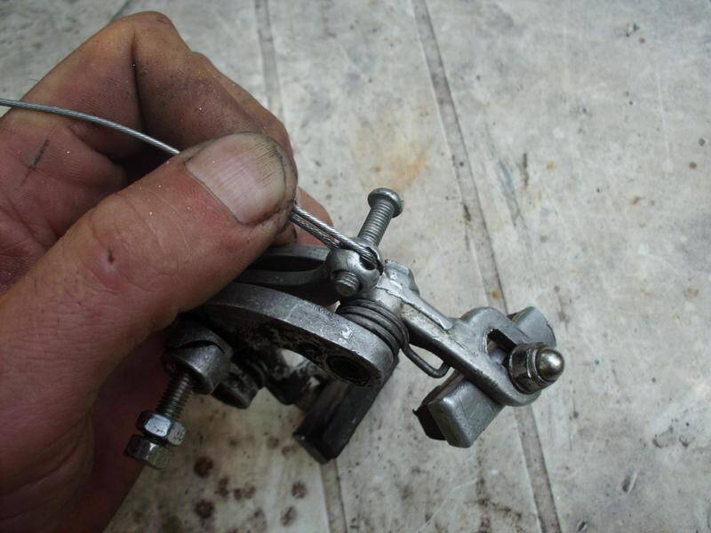Щель в рычаге неплохо несколько углубить ножовкой. Трос должен огибать болт по возможности полнее, всё должно быть затянуто до надёжного зажимания троса с деформацией краёв рычага.