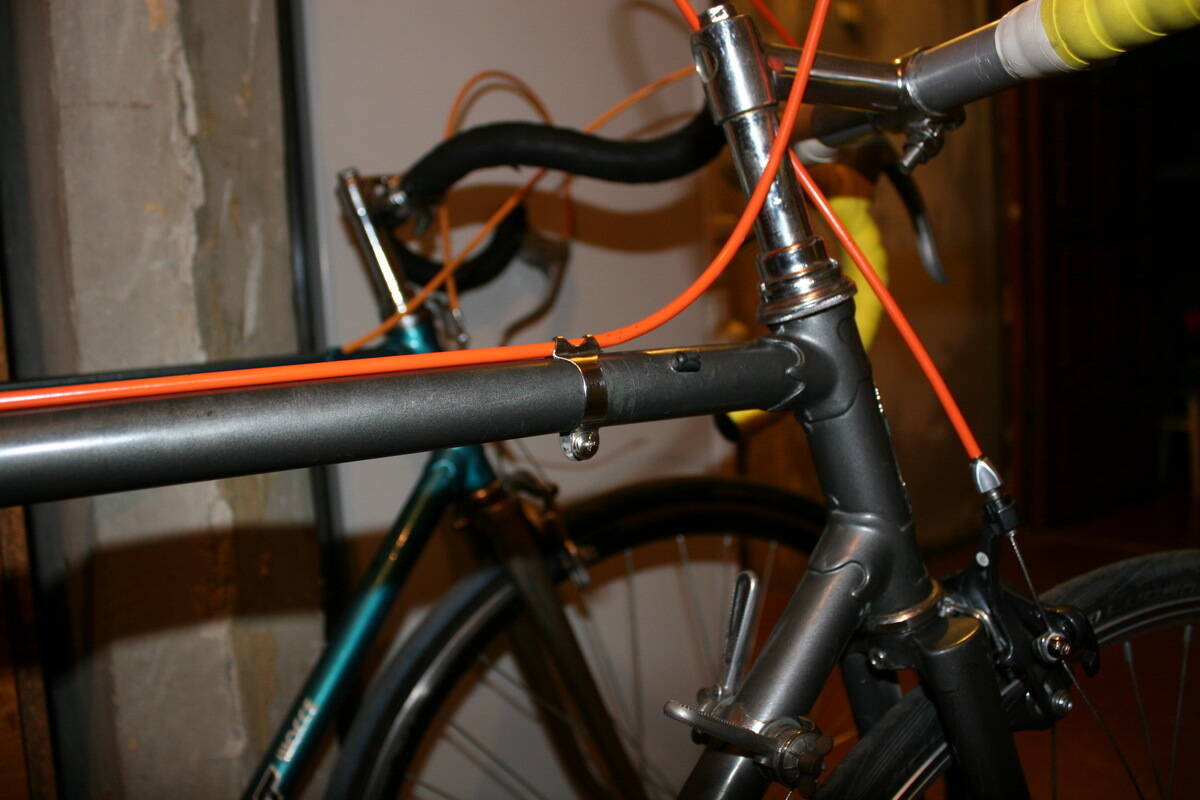 Последний штрих - хомуты для рубашки троса заднего тормоза. Идея украдена у Bianchi :D .