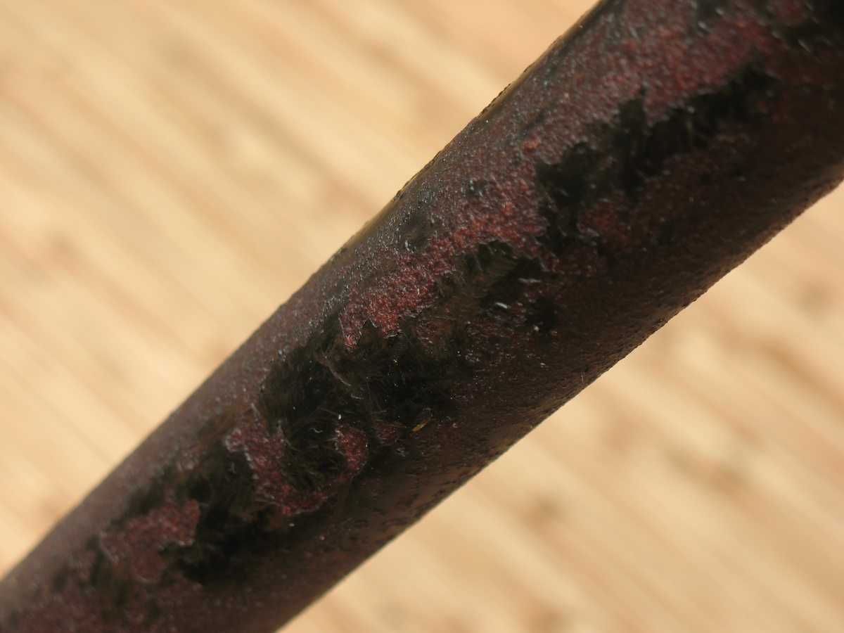 Сначала натёр мягкой, разогретой свечкой, потом прогрел всю раму до расплавления и растекания парафина. Если пытаться поливать горячим парафином холодные трубы он стекает и застывает каплями на холодном железе. А если вся труба прогрета то прекрасно впитывается ржавчиной. И, пока горячая, промокнул излишки и потёки туалетной бу.. салфеткой. После этого даже натирать нет нужды. На остатках краски слой парафина тонкий, а ржавчина полностью пропиталась и стереть парафин можно только с самой ржавчиной. Гламурные фото с капельками воды мне делать лень, но вода стекает не смачивая. Руками парафин на холодном железе почти не берётся и не чувствуется, только если хорошо потереть. Результатом удовлетворён :smile: