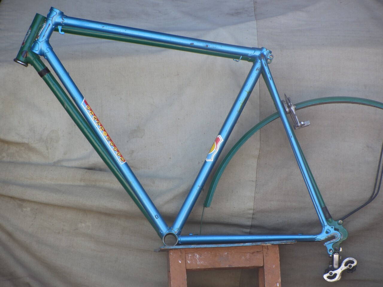 Может кому будет интересно, решил снять две рамы одной 56-й ростовки для наглядности , обе 86-го года. Выровнял рамы по кареточной трубе. Турист куплен лично мной в г.Харькове в феврале 86-го, СШ выменял 2 недели назад, вернее основную его часть без системы и седла.