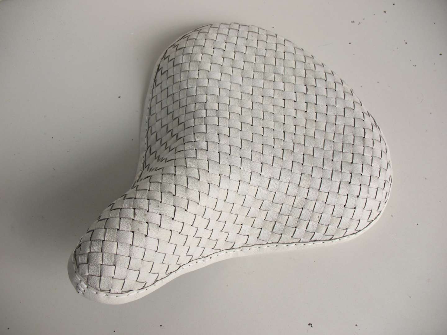 Белая кожа schwein nappa как было написано на этикетке плаща :) Опять же пропитана воском по той же технологии что и чепрак. После чего лист довольно мягкой кожи стал стоять торчком, и приобрёл способность сохранять заданную форму. Размечена на полоски по 7мм и нарезана острыми ножницами. И дальше седло непосредственно установленное на велосипеде было оплетено.