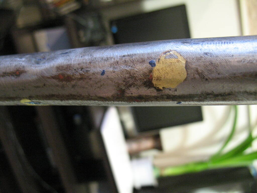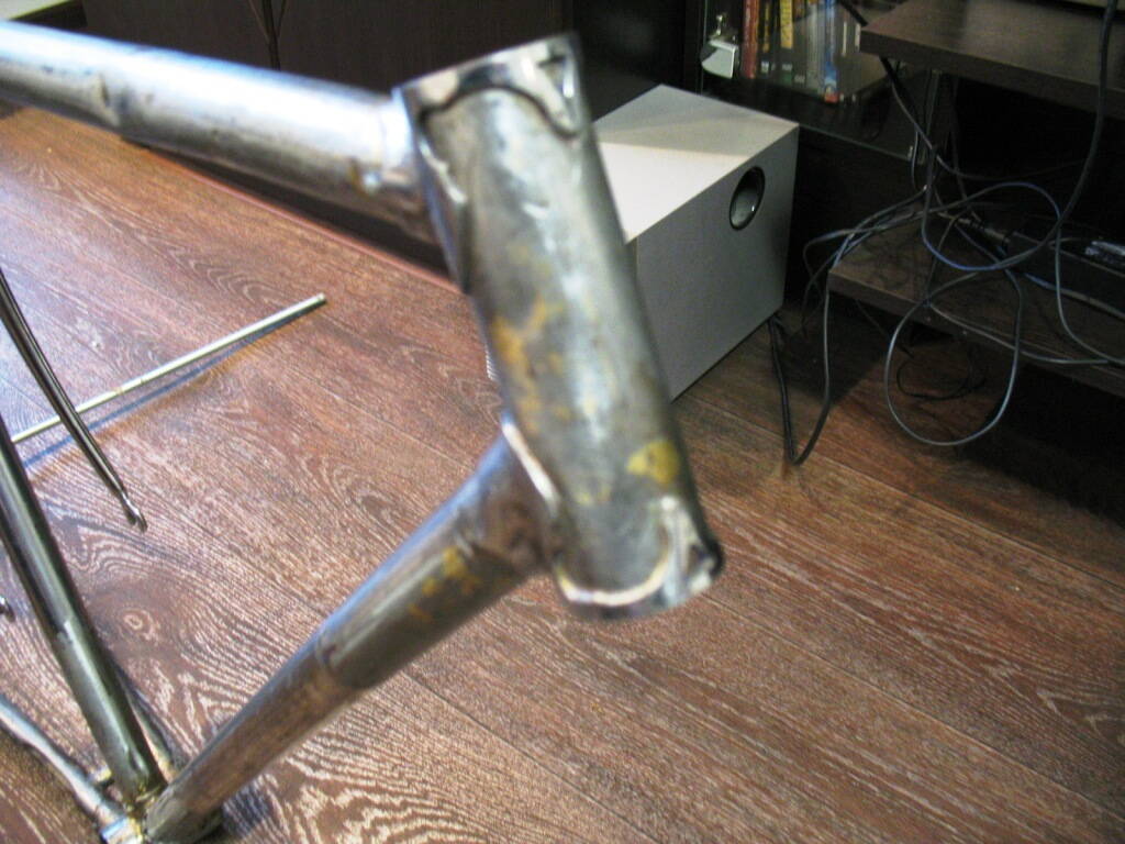4.В целом состояние 55ти летнего фреймсета можно было бы оценить на 5,(ни пятнышка ржавчины) если-бы не следы двух ремонтов горизонтальной трубы.Один ремонт был "просчитан" Если честно, то я боялся увидеть вот это