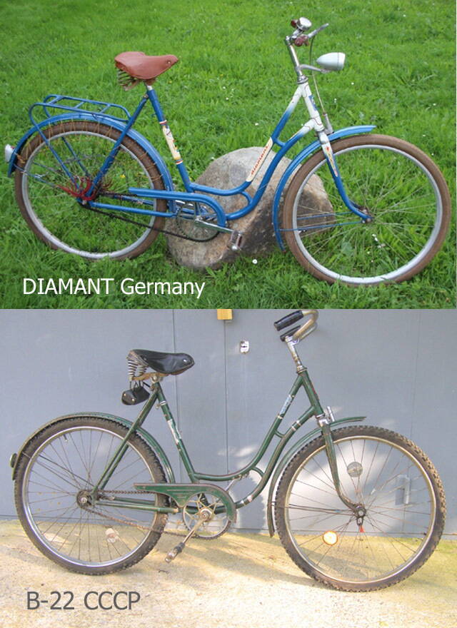 После войны WW2 заводы производившие велосипеды MIFA, Wanderer Cheimnitz, Diamant оказались в зоне советской оккупации, и были вывезены в СССР, очевидно вместе со специалистами. Нет сомнений, что и ХВЗ был один из первых, кто получил оборудование и технологию на велосипеды. К примеру, В-22, В-16, были чисто немецкие велосипеды.