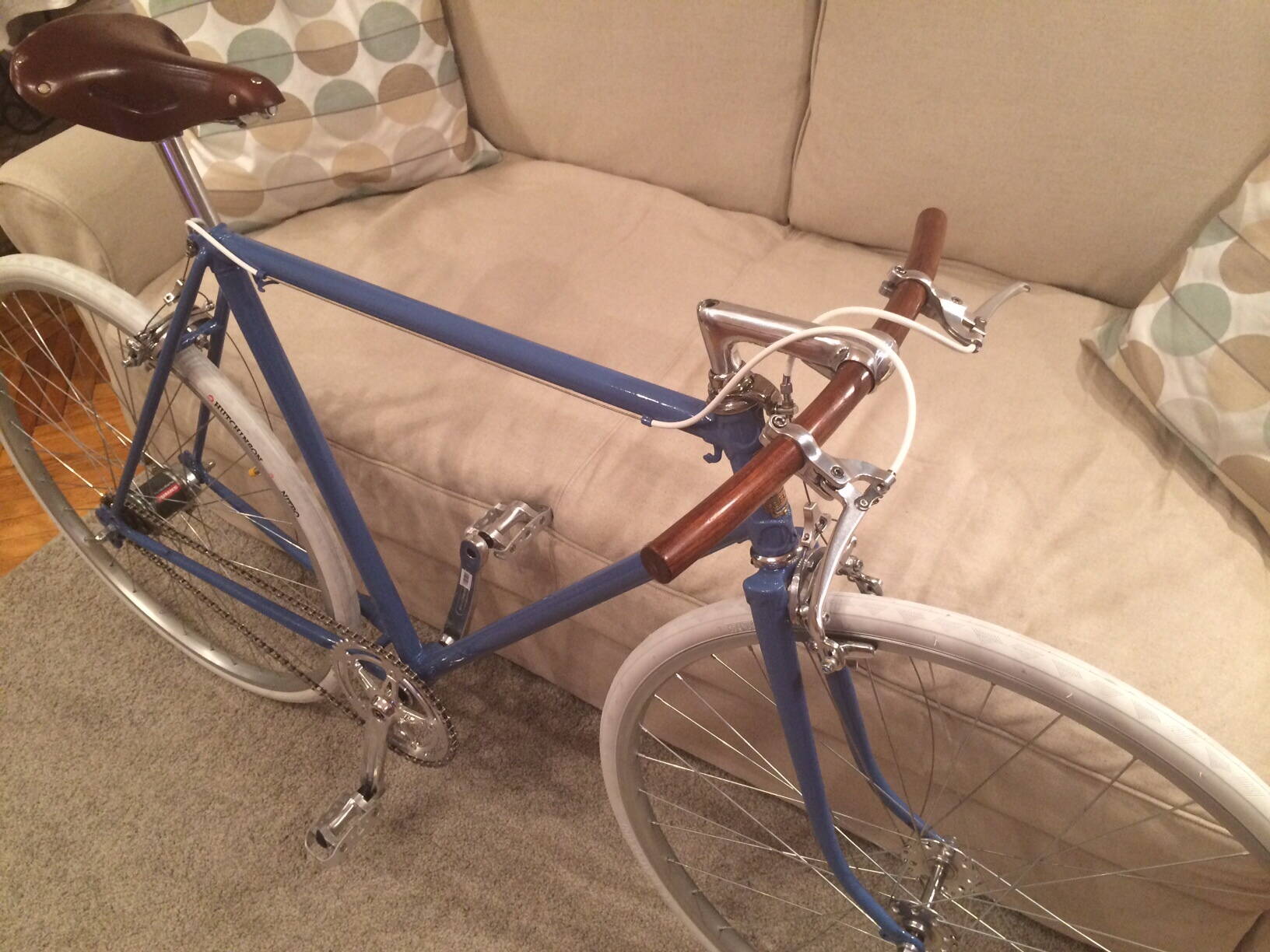 muravei_k Покрышки на 28 мм. Педали уже писал временные, будут стоять как на фотографии, см выше, срезать бонки и петухи не хочу, вдруг захочу из него шоссера собрать, насос рано или поздно попадется можно будет поставить. Тормоза вполне адекватно работают, тем более модифицированные, можно конечно поставить клещи более продвинутые, но в том то и интерес использовать не только раму но и детали ХВЗ. Тормозные ручки необходимость в данной комплектации, впрочем как и удобство. Имя пока прилипло "Автоматик" :smile: