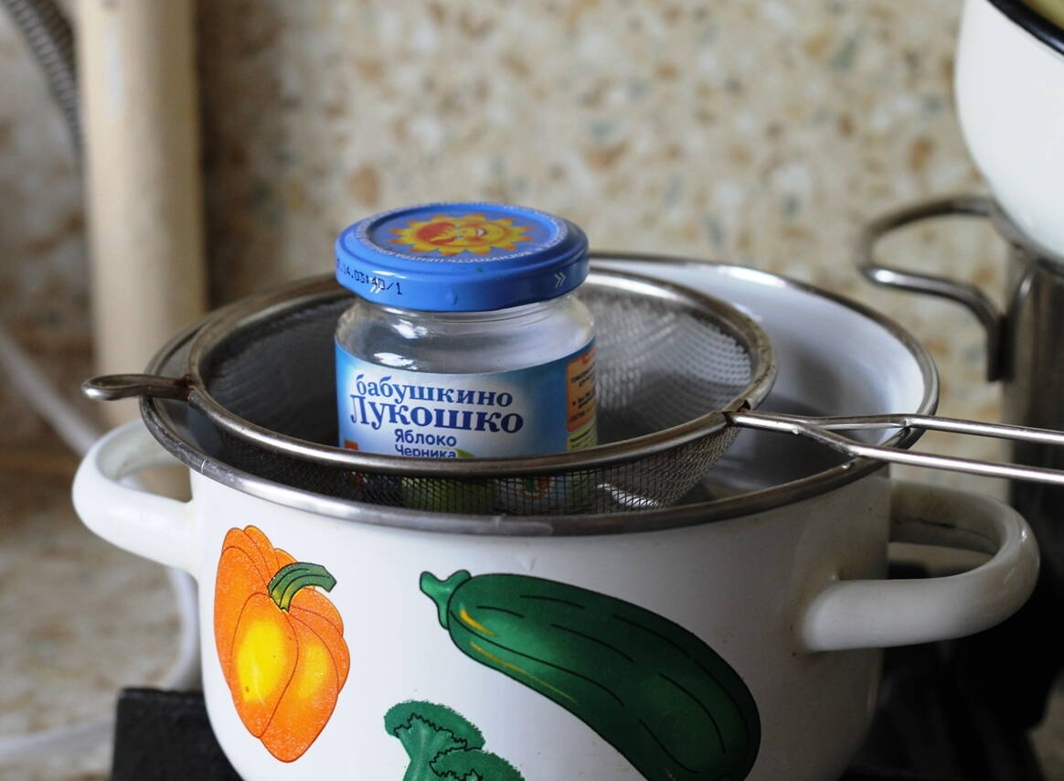 Настругал зелёный камушек в стеклянную баночку. Заправил подсолнечным маслом (можно машинным) и поставил на водяную баню.