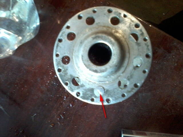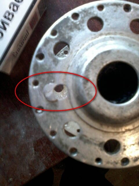 Чтобы просверлить это дело без фрезерного или какого-то такого станка, пришлось сделать алюминиевую заглушку в отверстие (фотки телефонные, извините за качество - фотик не взял). Без этого не получится рассверлить отверстие со смещением центра.