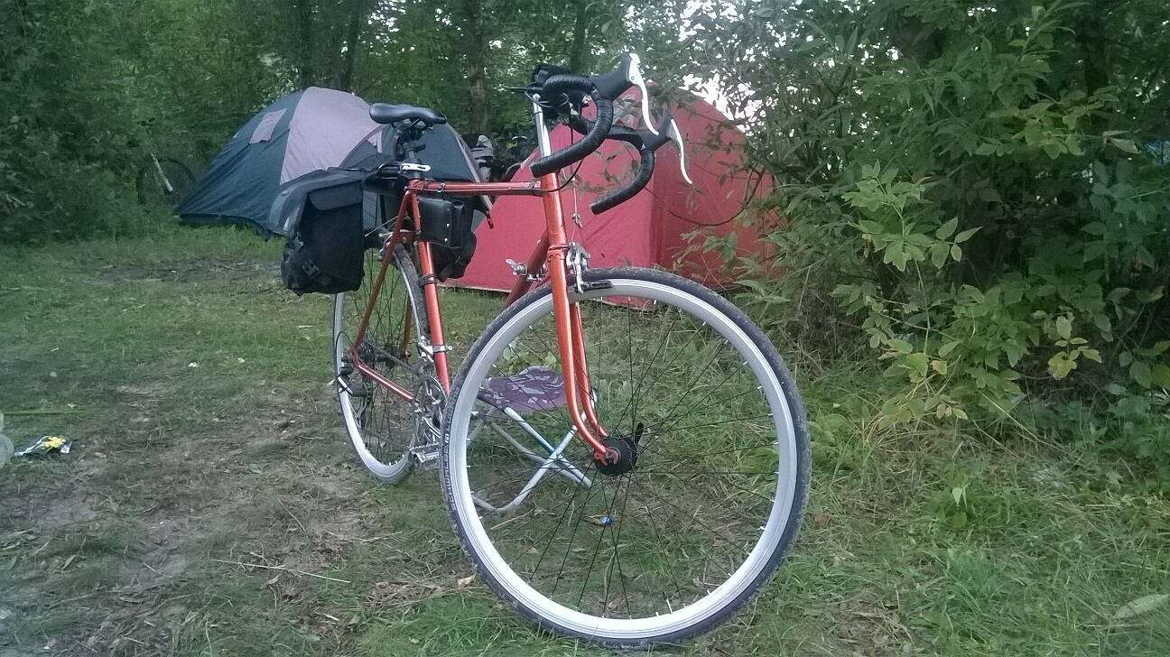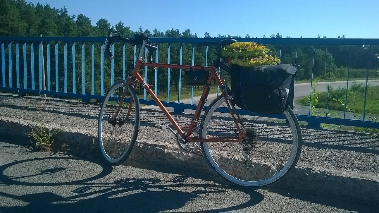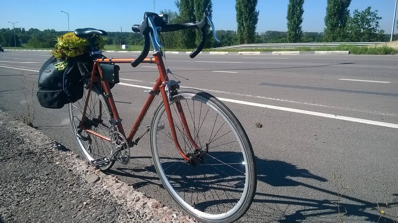 Спутник сгонял в поход туда/обратно 100 км асфальт и 14 км грунт. И снова ничего не отвалилось. Катал в окружении горников. Легкий и шустрый как птица. 700х23С на удивление отлично показали себя на грунте и грязи)