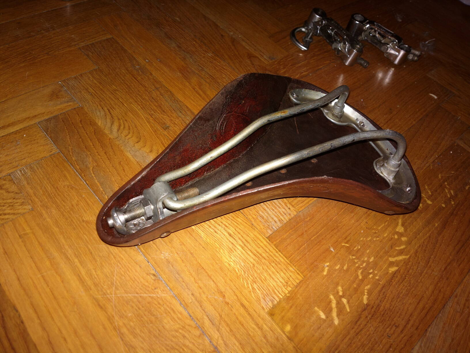 Итак, дорогие друзья и коллеги, у меня хорошие новости - В-542 Спорт "Малыш" на финальной стадии сборки. Сделал седло - пришлось полностью расклепать все и долго чистить, шкурить, мыть, переделывать замок натяжителя. До блеска и идеала не доводил, но результатом очень доволен. Уже перебрал всю навеску, собираем потихоньку. Нашел длинный подсидел - вошел с легким сопротивлением - как раз не болтается. Пока кроме седла ничего показывать не буду - надеюсь в воскресенье сделаю и тогда уже все сфотографирую во всей красоте. Велик вырисовывается очень красивый и нарядный.