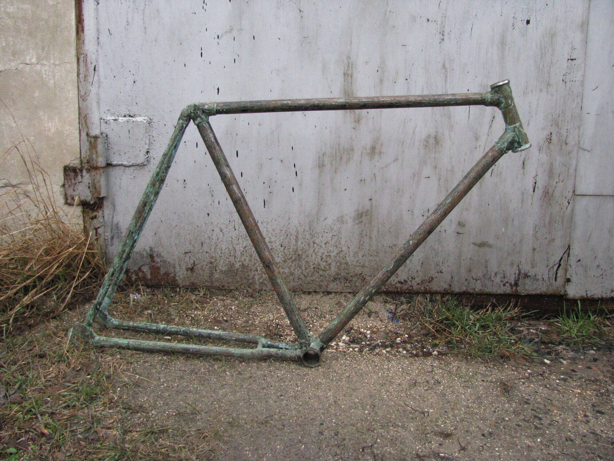 Согласен. похожа. но каретка обычная, типа ХВЗ, чашки на резьбе. Еще, что удивило, год и номер рамы выбиты на левом дропе, у ХВЗ вроде на правом бились. ВладК предположил что это кама в110, но не проходит по годам. Первая цифра точно 7... Оба мостика полутрубки... Хотя остатки цировки на верхней трубе вроде как похожи на цировку со 110-й камы...куда еще нужно глядеть и что мерять чтоб поточнее определится? Кстати дропы вообще хлипкие, очень тонкие (или мне по сравнению со стартоном так показалось?).
