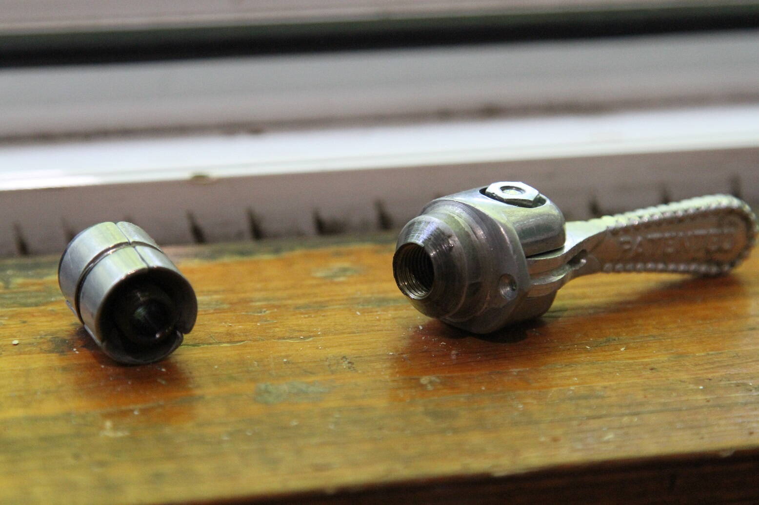Трос выходит внизу манетки под обмотку