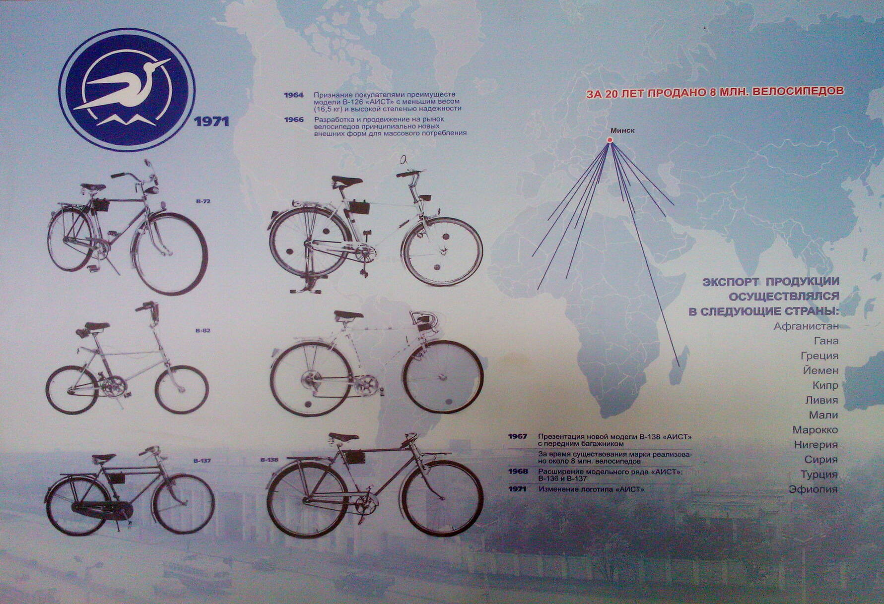 Первая фраза и сразу приехали! Что за "Аист"??! Первое упоминание "Аист", как марке было, если не ошибаюсь в конце 1970-х. Ну, оставите же свою фразу из более ранних булетов: "Год рождения белорусского велосипеда". Чем плохо и звучит патриотично, а не корпоративно.