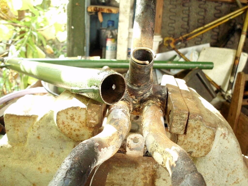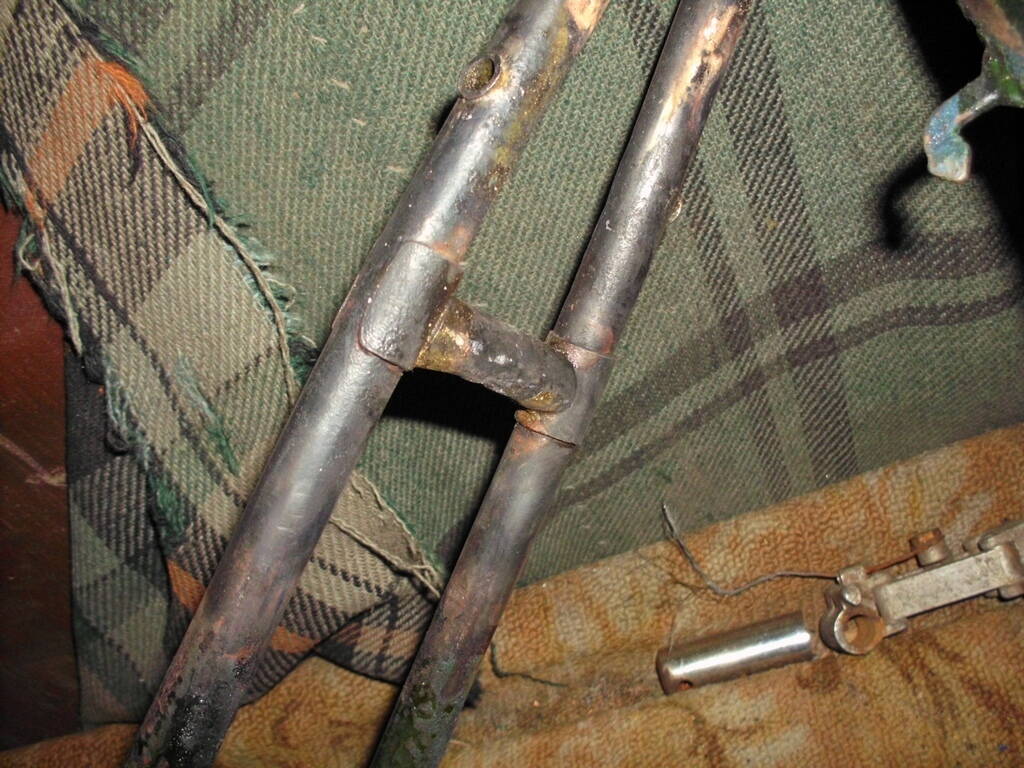 Зачистил шов, чтобы на него натянулась трубка. Здесь сварной шов не несёт основную нагрузку - её держит трубчатая накладка на пайке! Шов нужен просто, чтобы соединить обломки.Причём, не важно, сваркой или пайкой производится ремонт. Подробно об этом здесь: viewtopic.php?f=27&t=171020#p1172744