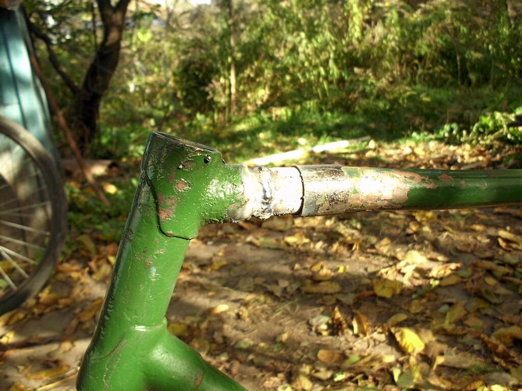 Верхняя вава скорее всего начала гнить задолго до того, как рама попала ко мне, ну а когда потеряло жёсткость соединение около каретки, оно пошло прогрессировать: