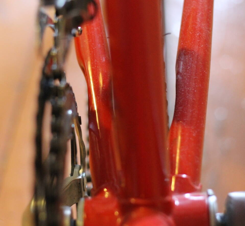 В выходные добрался до гаража, где зимовал мой СШ. У него задние перья и перья вилки хромированы. Остальное - окрашено варварским способом. Похоже был использован баллончик на велосипеде в сборе. Результат - поганое качество покрытия + забрызганый обвес.