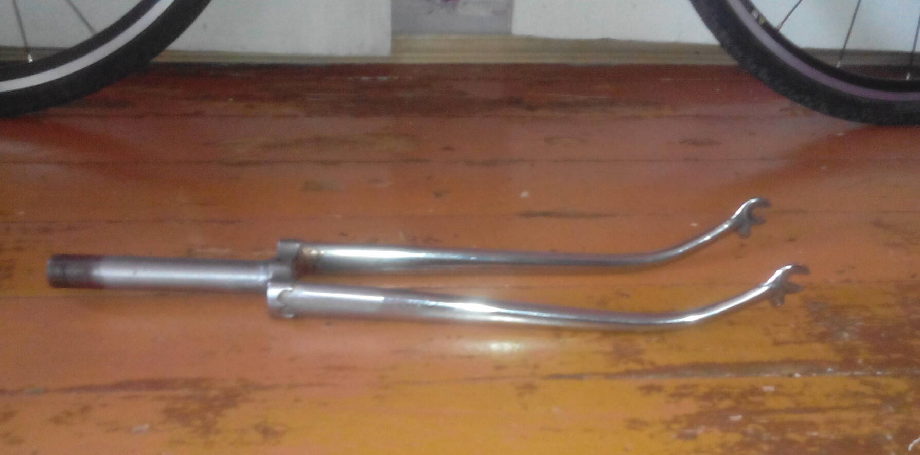Именно из-за большого вылета (изгиба) зеленой вилки у меня так замечательно встают на нее тормоза Shimano Sora с маленьким ричем. Поставив же хромированую вилку я понял, что эти тормоза не удастся поставить на эту вилку, рича не хватит, даже если пропилить его по максимому.