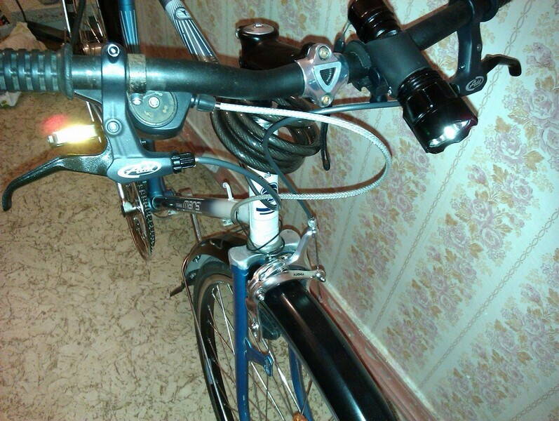 Рубашка длинновата, но не фатально. Может имеет смысл обвести ее слева от рулевой трубы, а не справа. Тормоза видно плохо, но вроде все в порядке. Со звездами что-то делать надо, особенно если будет спадать цепь. А может и не будет. Самый правильный способ - замена каретки на более длинную.