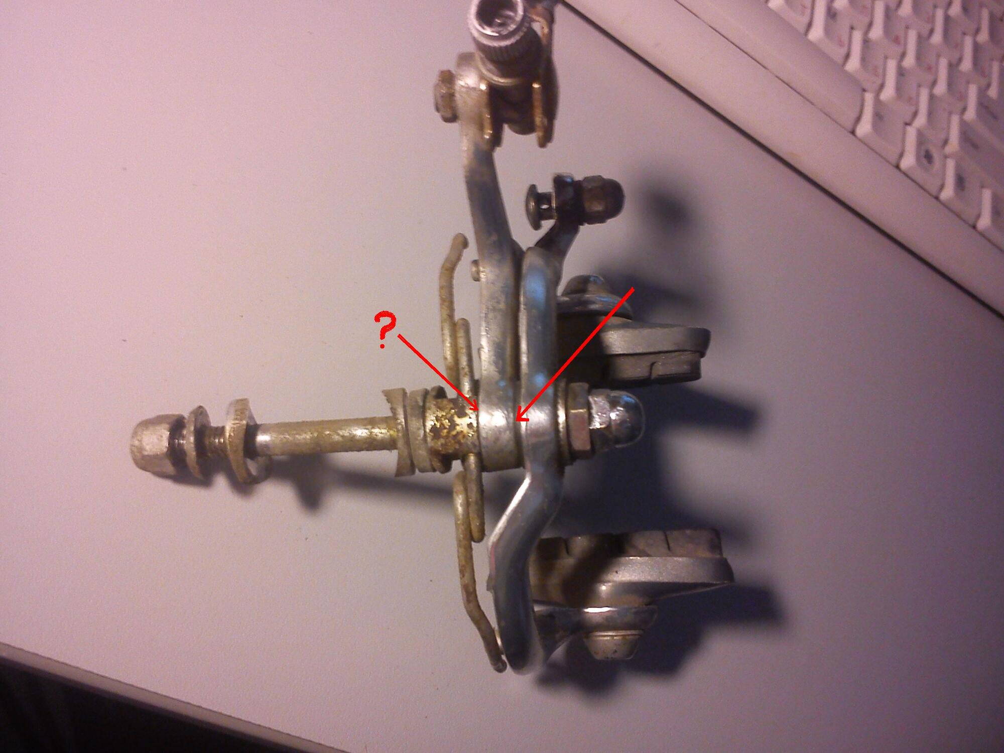 Еще вопрос по тормозам. Пластиковая шайба на оси должна между лапками быть или ближе к основанию? Или между лапками тонкая латунная шайбочка? На тормозах в разных местах всё(