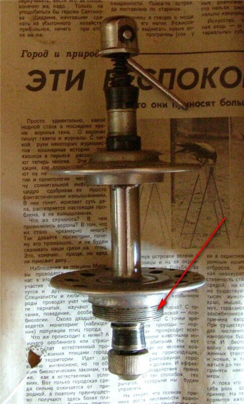 Снять втулку так и не смог. Не помог и газовый ключ и тески. Я не знаю из чего сделана эта фигня но метал тисков и ключа просто выламывается... Может она не разборная нифига? И зря я вообще это затеял? сбоку если постараться спицы и так можно было запихать.