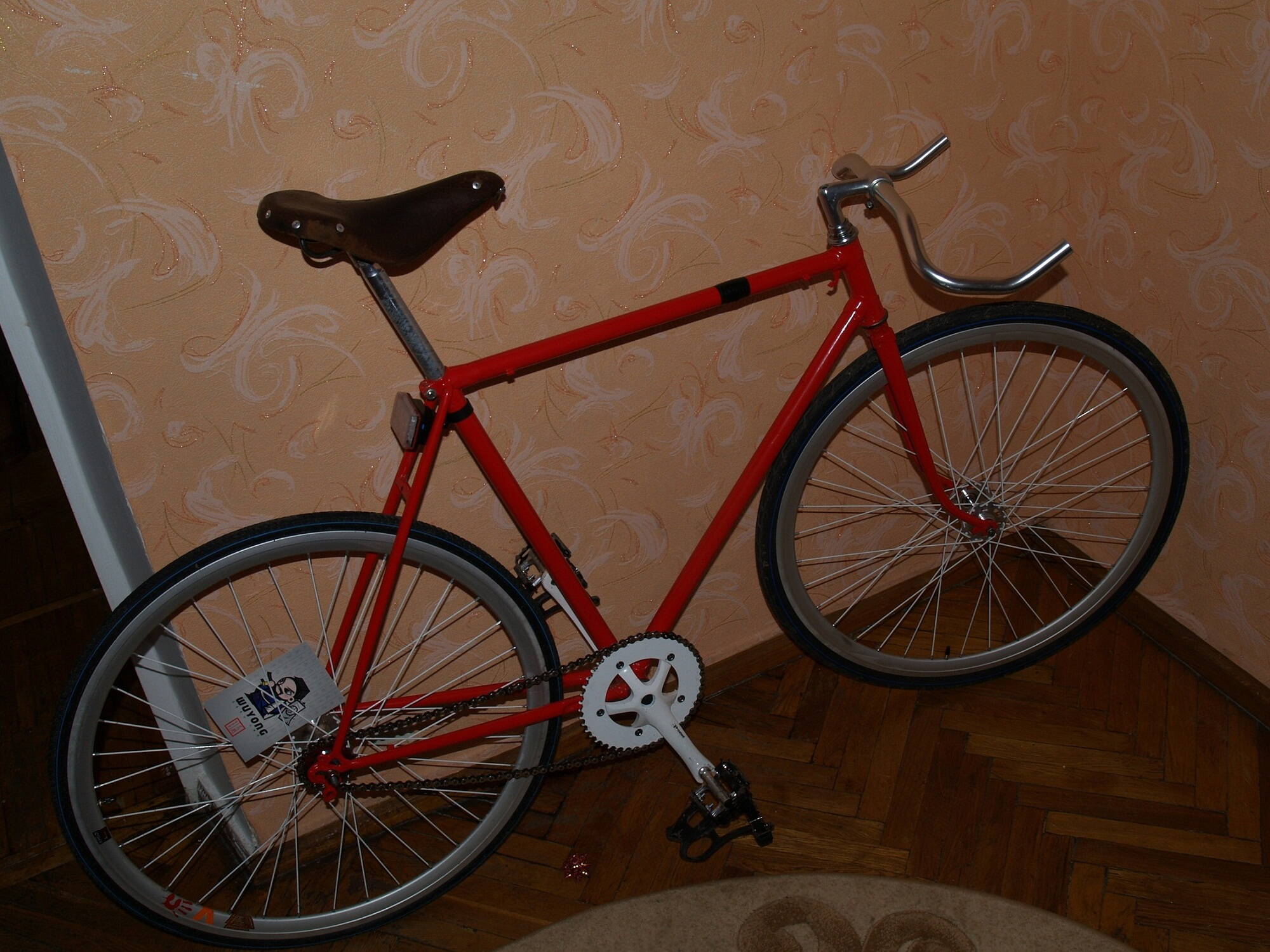 Из белого пока только спицы.В процессе юзания тех сёдел,что у меня есть-оригинальное ХВЗ-шное седло победило.Обмотки пока нет и не знаю пока нужна она мне или нет.Обода серебренного цвета тоже хорошо смотрятся.Как я понимаю крокодил выйдет красно-серебренный.Систему тоже скорее всего буду под цвет ободов брать.