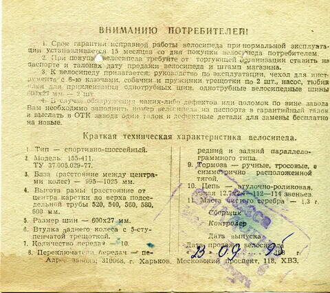 От себя добавлю, что в городе Горьком СШ в 1981г. в магазинах Спорткультторга стоил 113р., потом 125р., а в 1985г., как видно из паспорта, 137,5р.