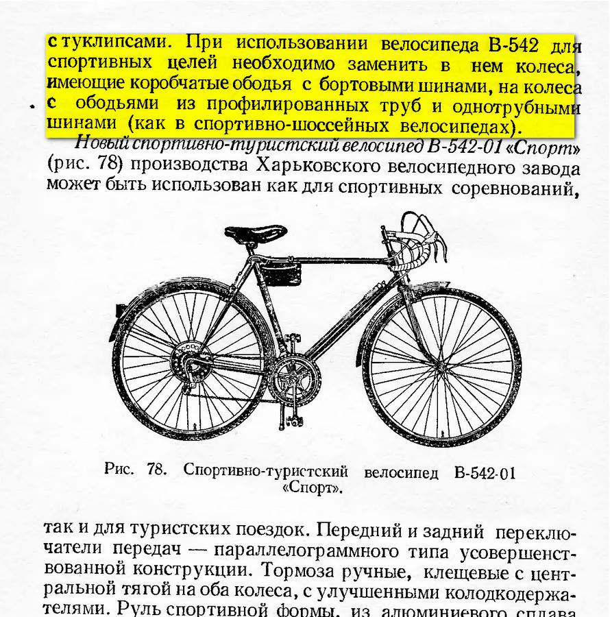Интересно, что писали в умных книгах в те годы, когда был выпущен Ваш велосипед и немного позже (В-542 - это правильный турист с наклейками "Спорт"):