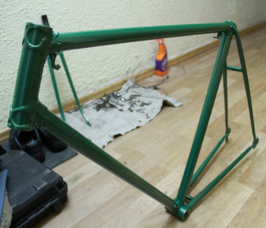 И так покрасили мою раму. Покрасили и отпескоструили точнее сначала отпескоструили, а потом покрасили классно, мне понравилось. На дневном свету не видел, но надеюсь рама заиграет. Жене и соседу не очень понравился цвет. Как по мне то на солнце должно смотреться прикольно. В общем смотрите что получилось.