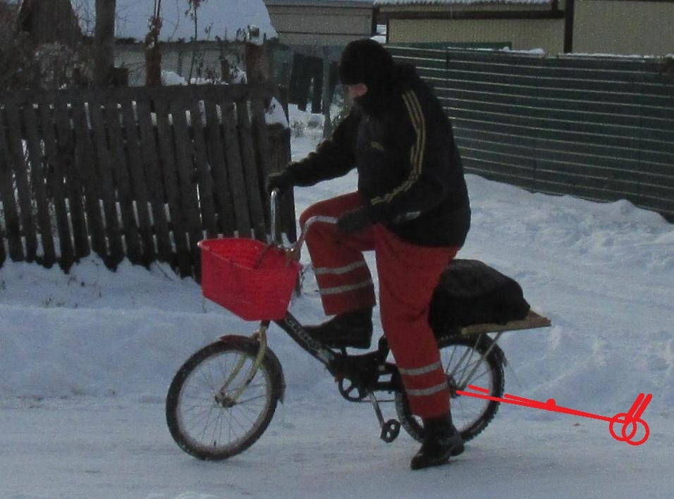 Пока что я в смущении насчет того стоит ли для такого рода грузов заводить тележку, или же сделать какие-то крепления чтобы можно было листы полтора на полтора метра везти на самом велосипеде сбоку в вертикальном положении. Конечно, тогда уже нельзя будет на велосипеде ехать а нужно будет вести его развернув руль вдоль. Затруднение состоит в том что лист полтора на полтора недостаточно просто опереть нижним ребром на какие-то зацепки: надо и за верх как-то держать, или хотя бы за середину. Но и заводить специально для этого тележку тоже не хочется так как она будет использоваться только 2-3 раза в год, да и то не каждый год.