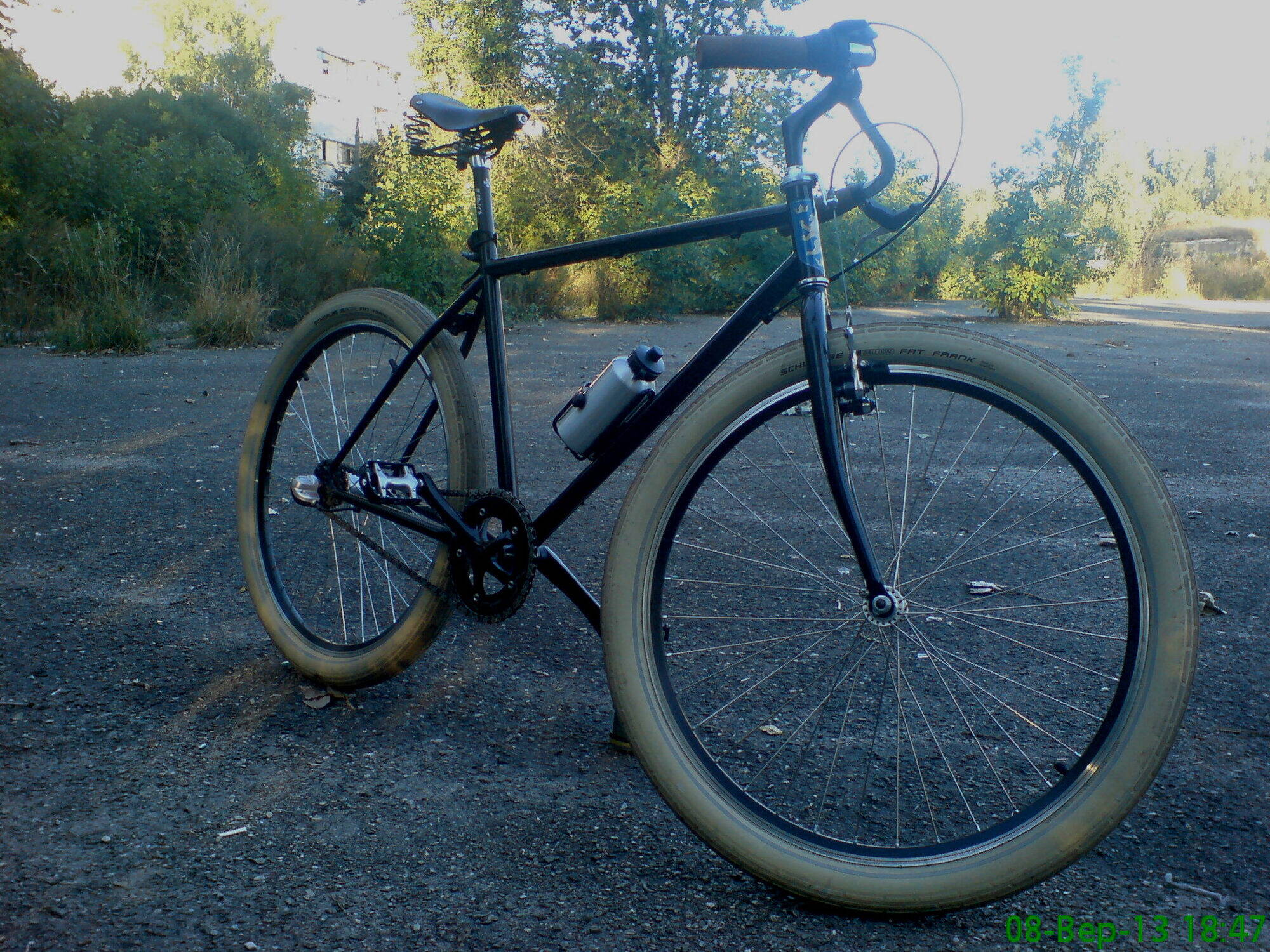 Балувався з колесами і просто прифігів коли у передню вилку влізли 28 дюймові колеса і 42 покришки, правда впритик, а 38 ззаді мають простір під крила, я в шоці з цих ашанчиків