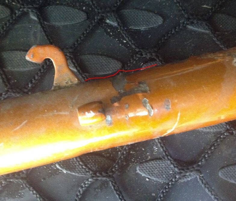 Тот турист, который есть - горбатый после крепкого фронтального удара (и не только). Точнее, на верхней трубе - горб, на нижней - гофра.