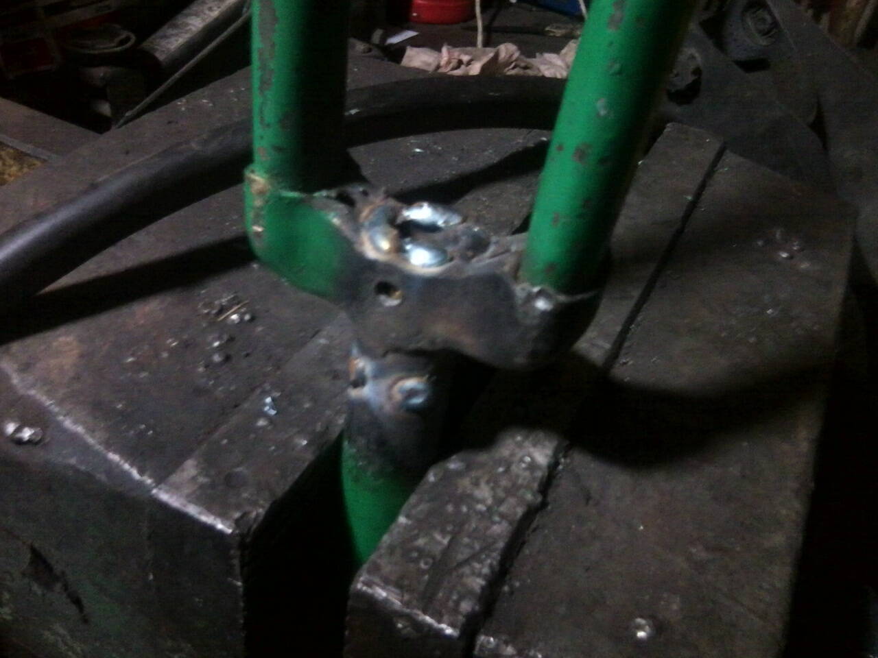 Здравствуйте, да согласен это дорожник и сравнивать надо с Урал, Украина, сколь они весят? операция на трубе прошла успешно, пациент скорее жив, в месте примыкания верхней тубы к подседельной не было отверстия для вентиляции, результат на лице, добавил отверстия с низу каретки, вопрос: на вилке треснул припой, труба вроде целая, и как то там напаяно, наварено :sad: