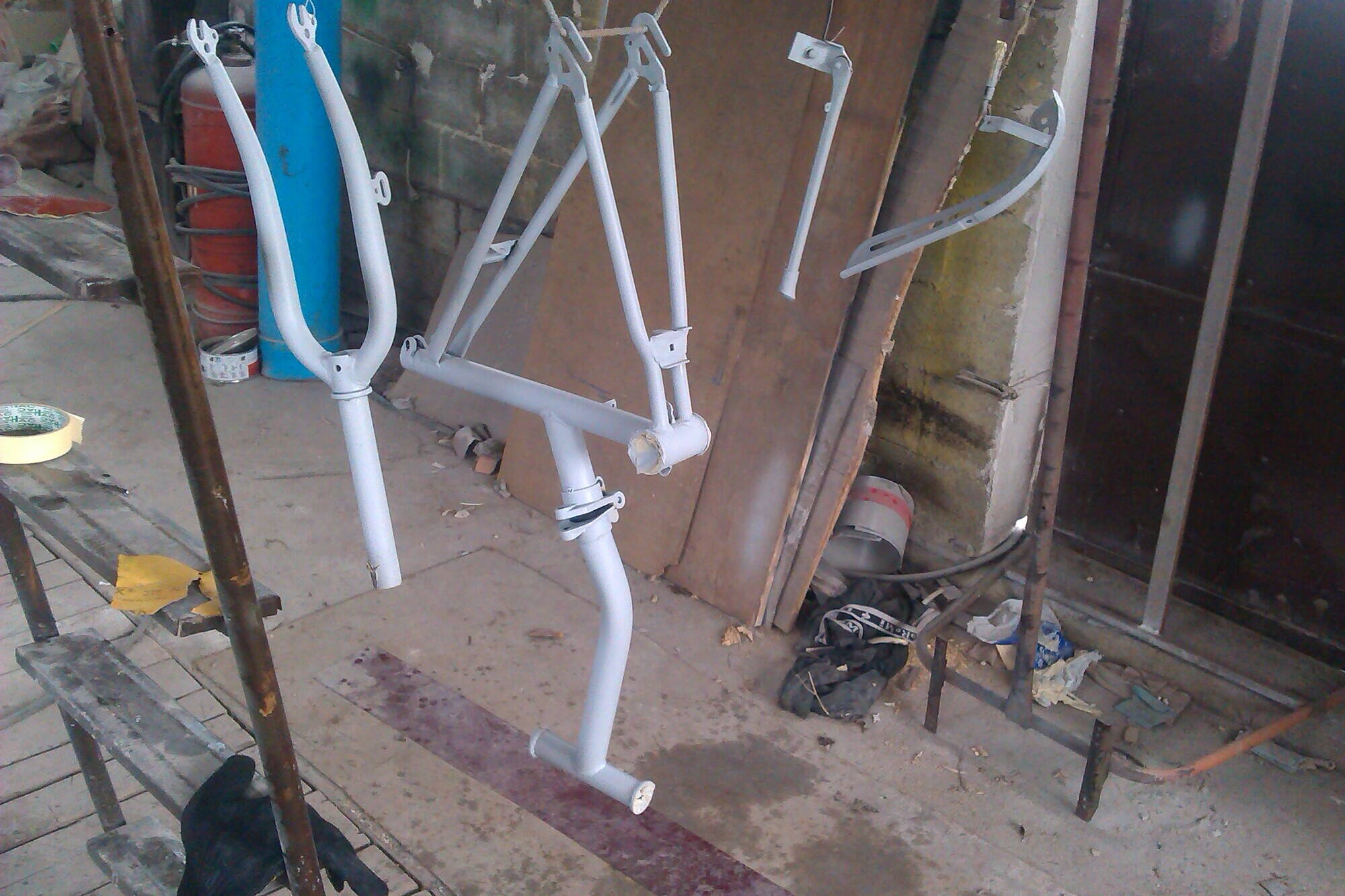 Стойки отпиливаем на нужную высоту и всё получается красиво для колеса 20'.