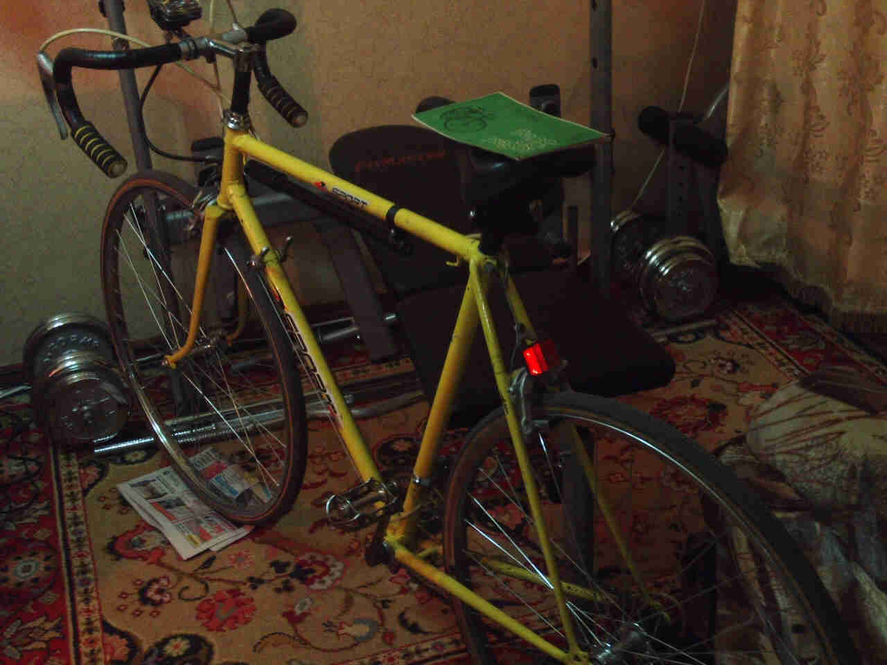 Сейчас обычно еду по городу со скоростью меньше сорока и слышу такие комментарии, один другому - "смотри какой велик прикольный!", в основном это дети, и у этого самого прикольного велика рама выполнена из хром-молибдена, точное название - сталь 33Х, обладающая повышенной прочностью и лёгкостью, если честно, любой кто бы мне предложил сменять мой "Старт-Шоссе" на крутой навороченный агрегат иностранного производства с какими-нибудь 30-мя скоростями, я бы отказался, это точно! Дело вовсе не в наворотах...тут как бы это объяснить....душой чтоли к нему прикипел. Когда едешь на нём возникает чувство высокого удовлетворения от процесса, тем более что кроме "Туристов" я уже не вижу чтобы такие экземпляры были на ходу, видно из за нехотения переделывать ходовую колёсную систему с однотрубок на камеры с покрышками, да ещё и спрос на автомобильный транспорт возрос, особенно у молодёжи. Я считаю "Старт-Шоссе" по облику ничуть не устарел, немного фантазии в преображении облицовки и может получиться внушительный вида гоночный экземпляр. Самое интересное что когда наклеивал на свою раму наклейку содранную с китайского велосипеда я даже и не знал что раньше выпускали советские шоссейно-дорожные велосипеды под названием "Спорт", которые чуть тяжелее по весу в сравнении с гоночными "Старт-Шоссе", в итоге получилось очень модно, тем более что надпись на латинском языке. Так со тороны можно даже подумать - какой-то редкий экспортный вариант велосипеда "Спорт" без детального его рассмотрения.