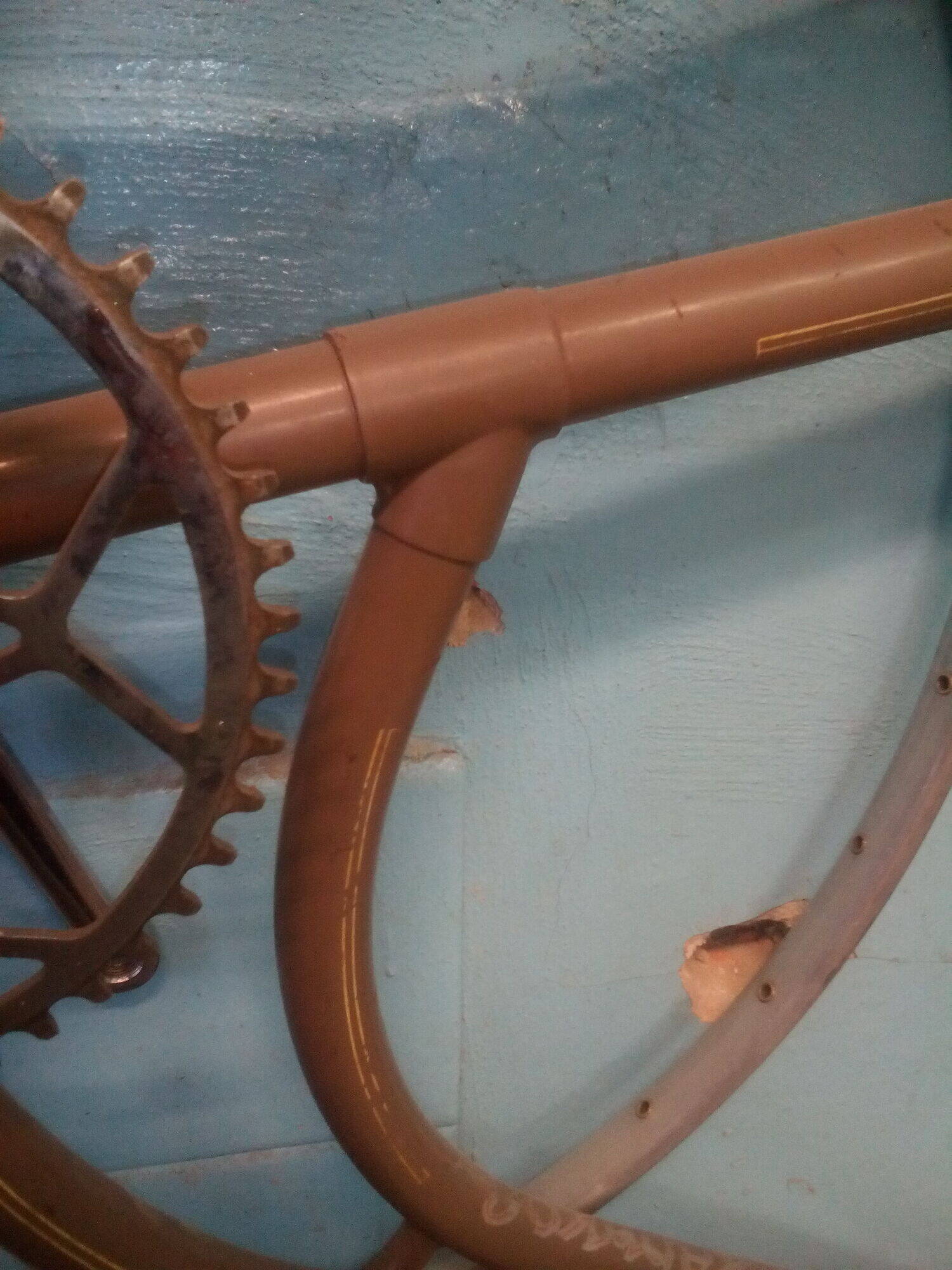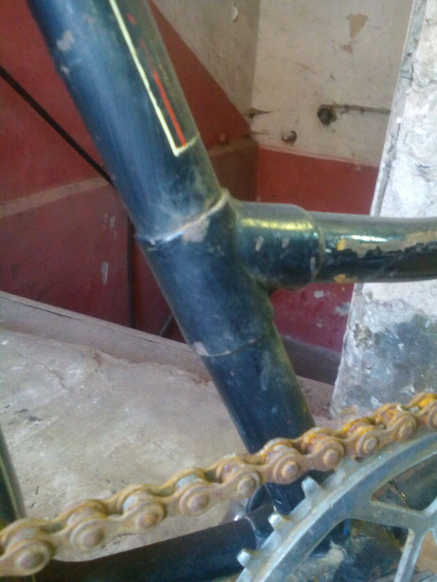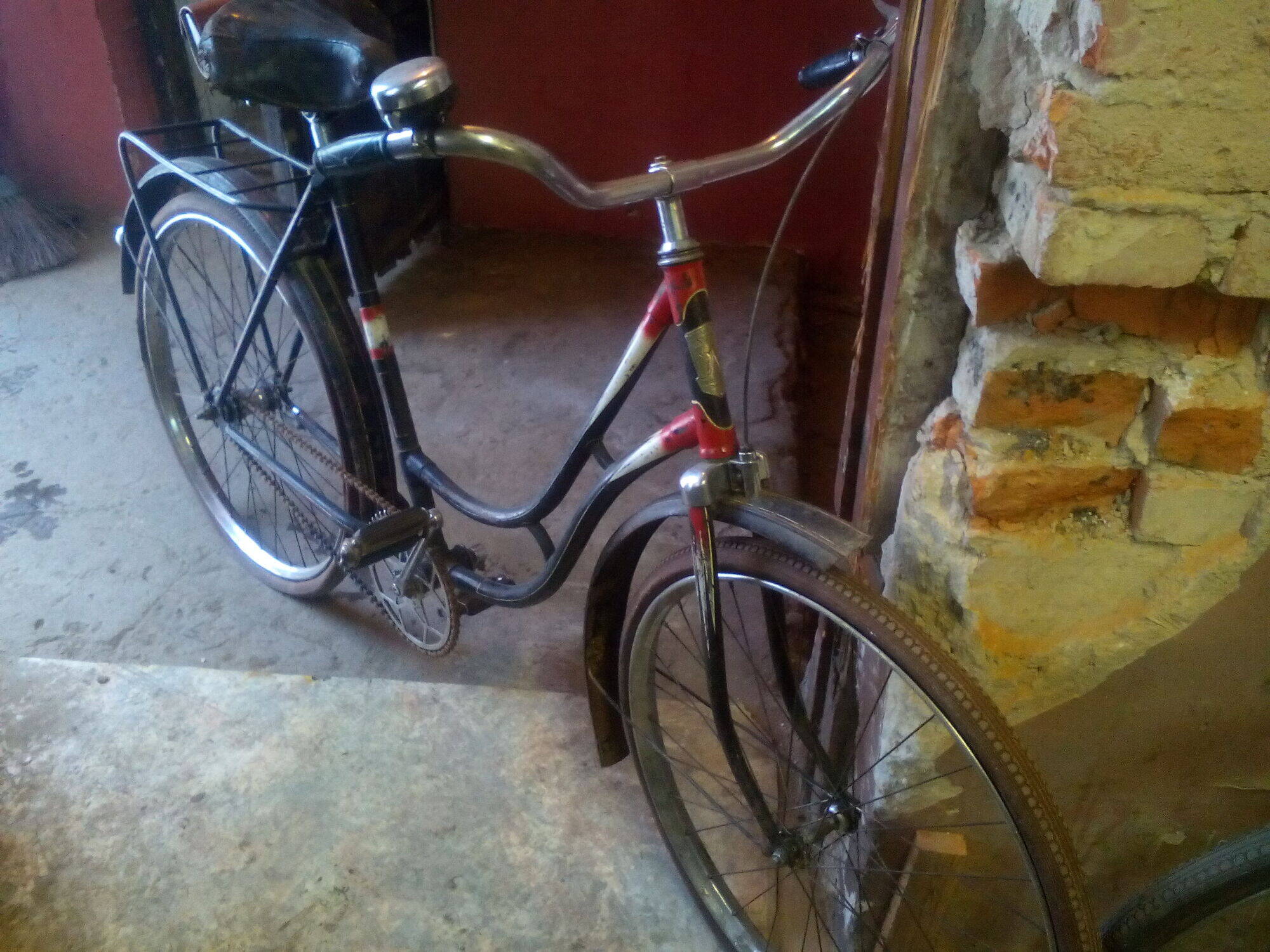 Если Вы имеете ввиду надписи, то рама крашеная по ржавчине :sad: . Если не ошибаюсь, то это не самый ранний вариант, так как эмблема была на заклепках. Опять же, если не ошибаюсь, нижний предел года выпуска - появление шильдика (1950?), а верхний - изменение конструкции рамы. Вам эти даты не известны :oops: ?