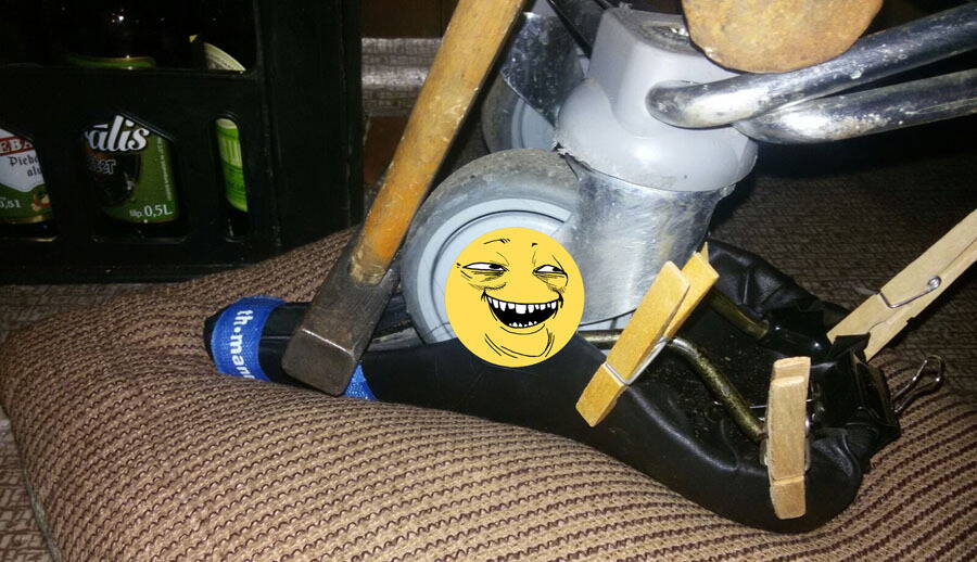 Процесс идет, зарезал свой кожаный пиджак, по советам Aleksei Dmytren подержал в тёплой воде, начал формовать. Почему-то показалось, что логично было бы на ночь натянуть, прикрепить прищепками. Ну, это понятно, но в изгибах образовались воздушные "пещеры". Пришла мысль положить седло с прищемленной кожей на подушку, а сверху положить некий груз: два молотка и одним колесом магазинную коляску. (нет, это коляска не из сети магазинов Ашан, а продутковых, в которых продают очень дешеве веломакеты :twisted: ). Кожу еще не приклеивал, просто оставил на ночь просохнуть, принять нужную форму.