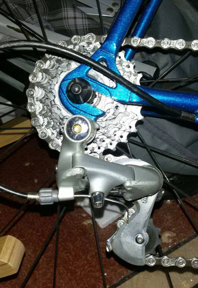кстати из-за этой проблемы я на 5 скоростную трещотку купил цепь 8 ск чтобы более узкой была и меньше о передний переключатель терла
