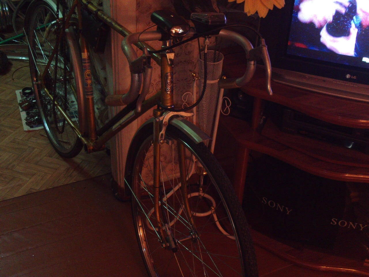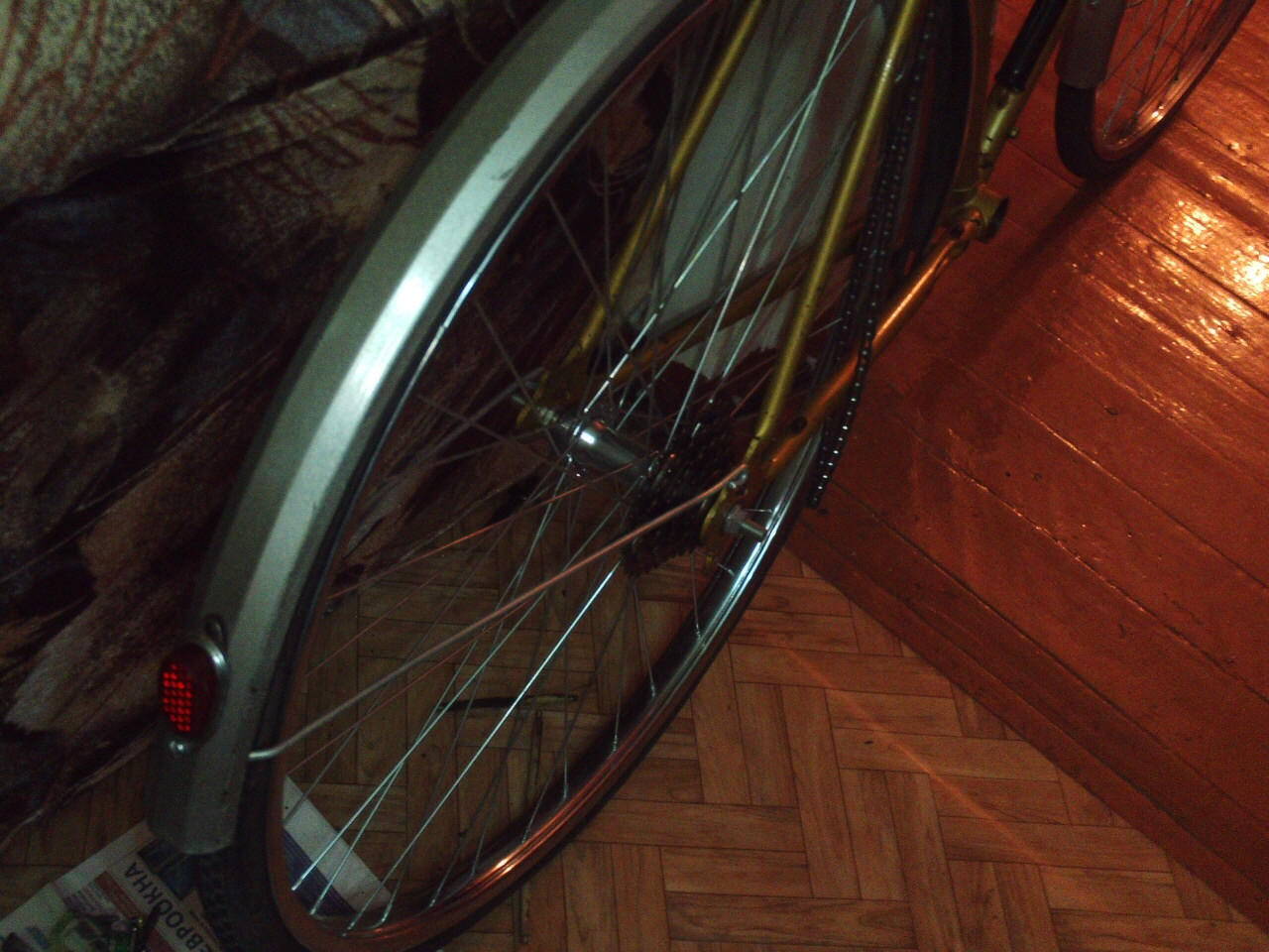 Сегодня с утра капитально взялся за "Спутник" и уже примерно к обеду поставил его "на ноги", проехал 15 километров, конечно же нет такой лёгкости что за рулём "Старт-Шоссе" но привыкнуть можно. Когда подъехал к перекрёстку мне пересёк дорогу велосипедист на таком же "Спутнике" золотистого цвета, бывает же так, в наш век высоких технологий и вот так "столкнуться", наверное он тех же годов что и мой, домой добрался благополучно, правда пришлось спицы на заднем колесе потом подтягивать, китайский производитель делает всё абы как лишь бы-лишь бы. Вообщем теперь остаётся ювелирная работа - поставить резинки на педали со световозвращателями и смонтировать задний стоповый фонарь, а так можно считать что 424-ый "Спутник" готов к эксплуатации, начались осенние дожди, так что скорее всего именно на нём буду закрывать велосезон 2011.