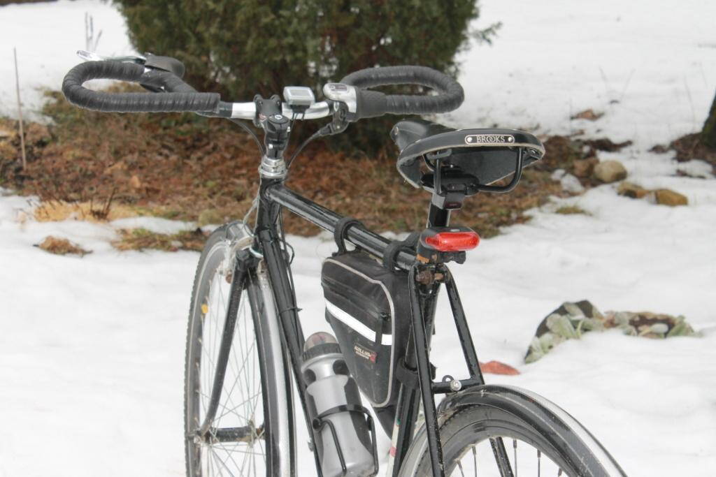 Ну серьёзно, сейчас вроде зима, метров 400 по асфальту я на нём проехал, чтоб тормоза опробовать, седло подогнать, а в огороде снег мокрый лежит, только в зимней обуви можно.